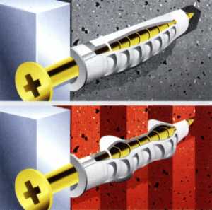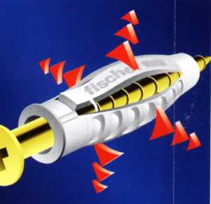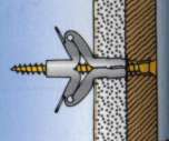 ladrillos o paredes huecas, por trabado. Reune ambas formas de actuación: expansión y plegado. Está concebido para emplear con tornillo rosca madera o rosca aglomerado. Cuando se monta en materiales