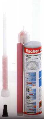 inserta el elemento de union en el casquillo lleno. Este casquillo ahorra mortero y centra dicho elemento de unión. Transcurrirá una hora (a 20° C ), el anclaje presentará una resistencia superior a la